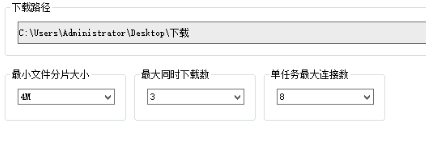 4、依次对【最小文件分片大小】、【最大同时下载数】、【单任务最大连接数】进行设置。