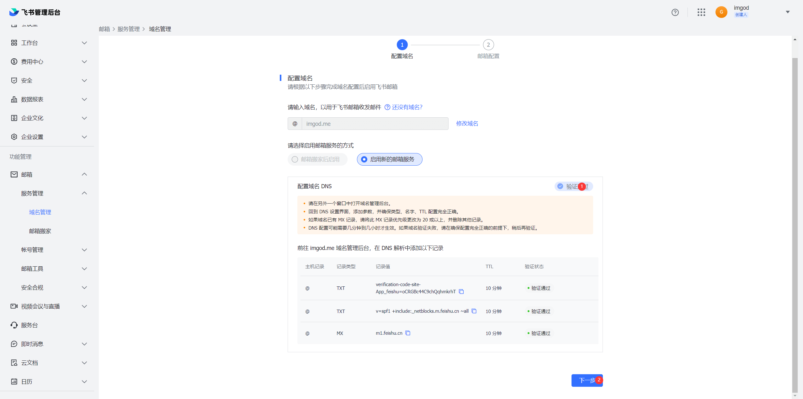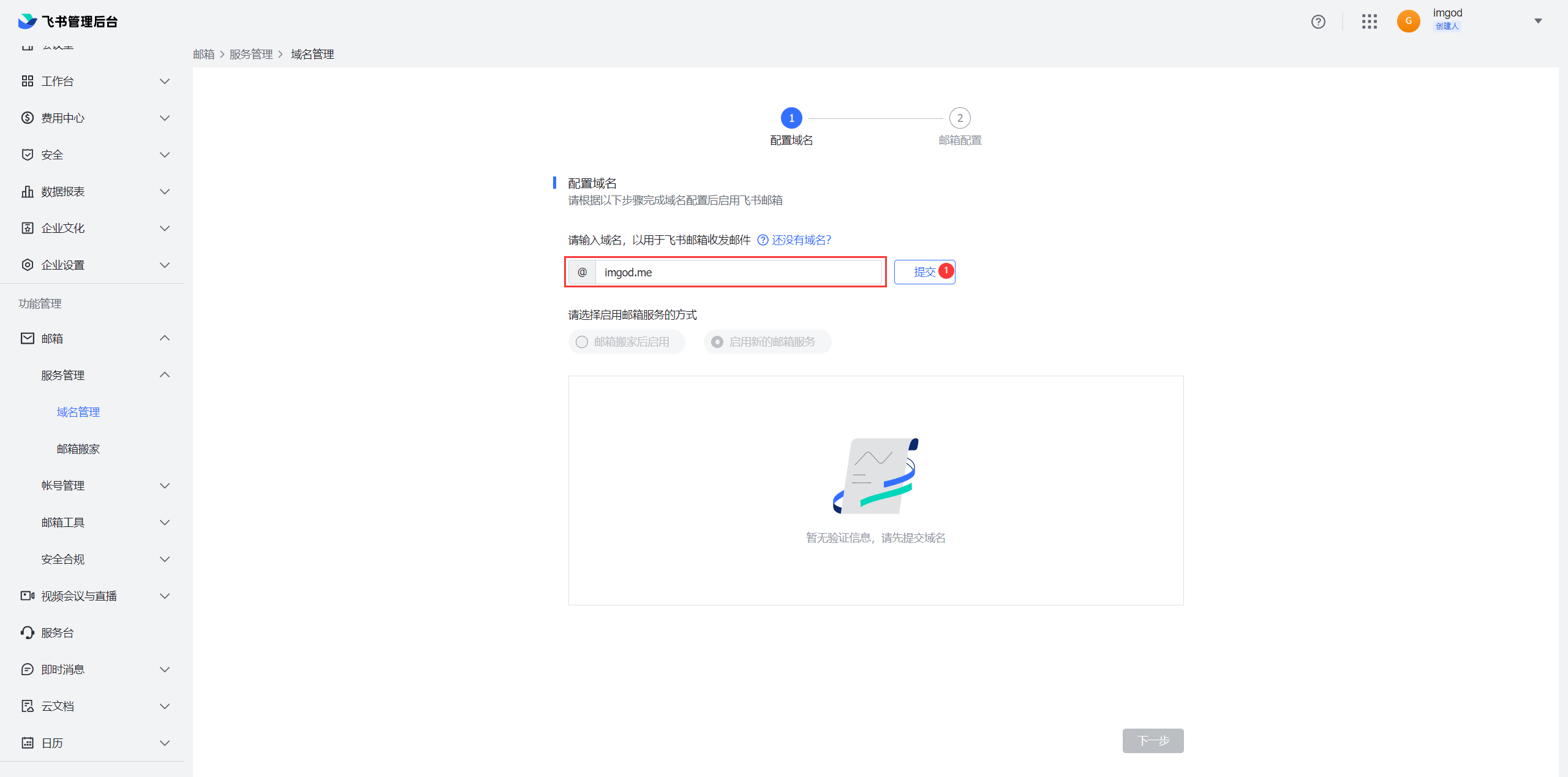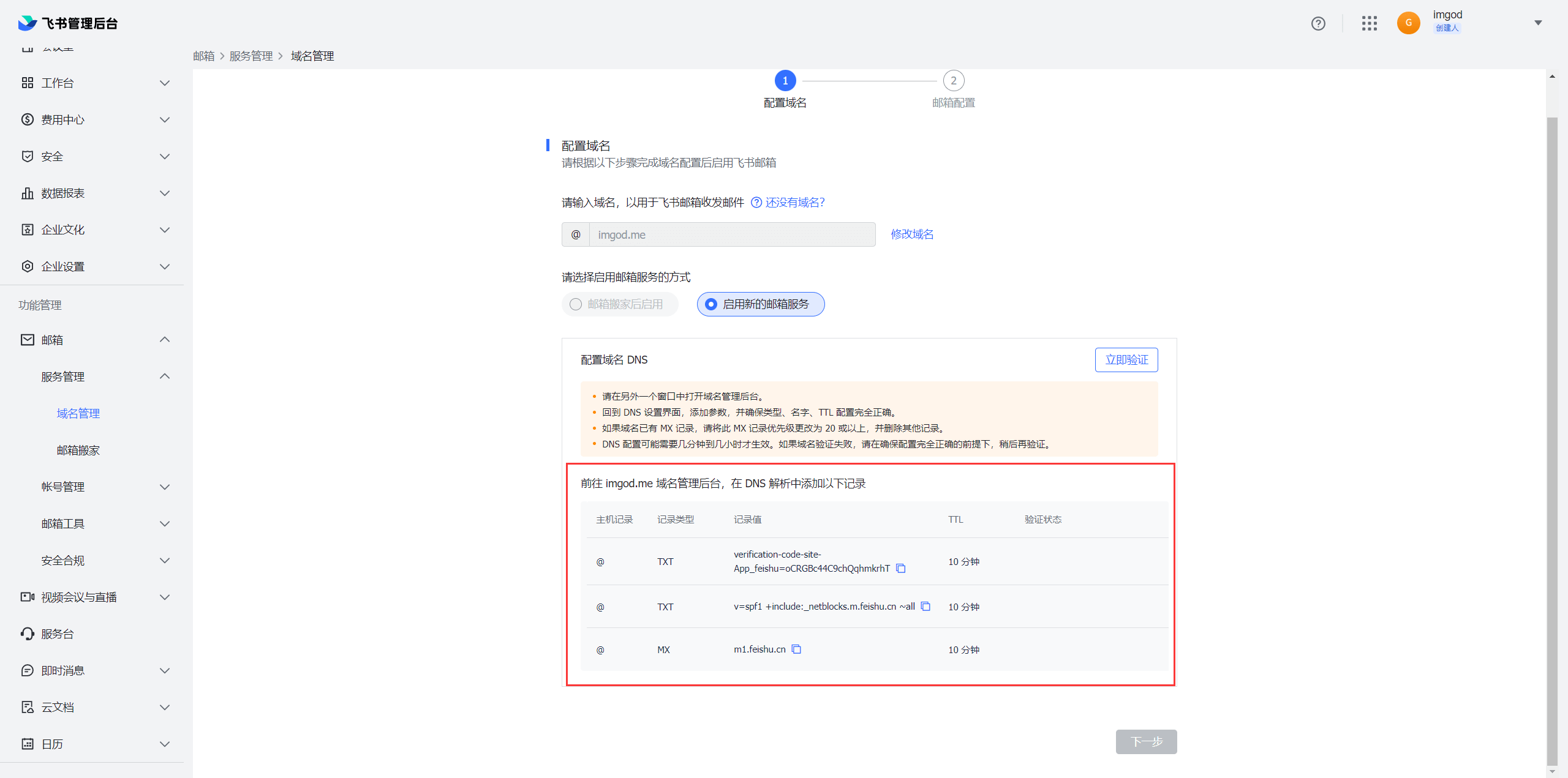 通过飞书开通个性域名邮箱-飞书免费企业邮局
