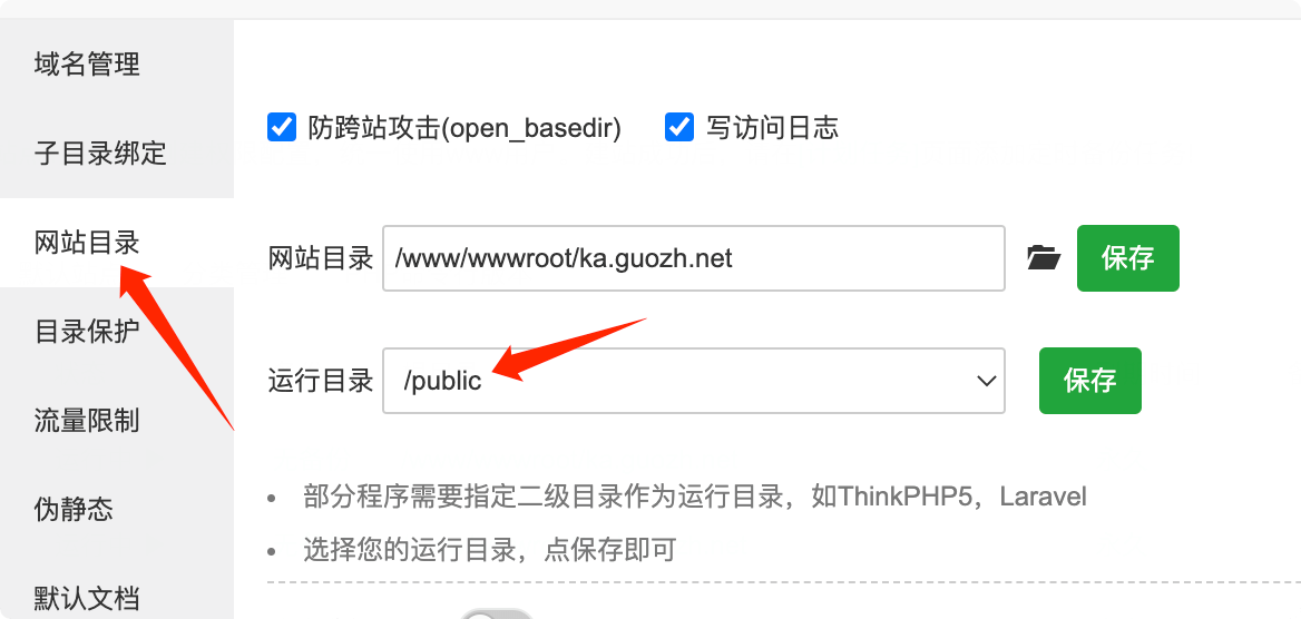 执行目录: 网站根目录